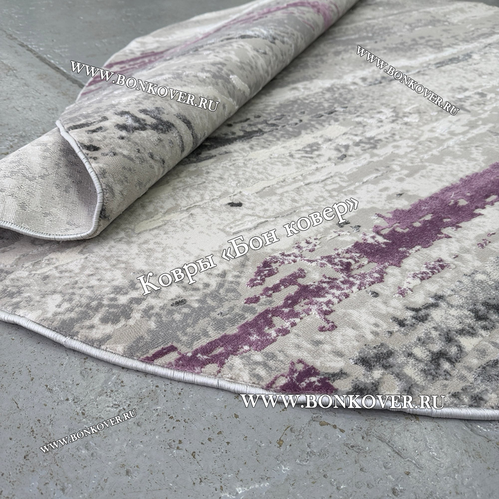 Круглый Ковер Для Гостиной Сиреневый С Серым Дизайн 30451 станет идеальным дополнением интерьера, оформленного в современном или классическом стиле. Мягкое, но прочное, ковровое покрытие обеспечивает тепло- и шумоизоляцию, отличается длительным сроком эксплуатации, пожаробезопасностью, экологичностью и высокой износостойкостью, является отличным барьером от повышенной влажности в помещении и утеплителем для холодного пола. Благодаря качеству материалов, ковер не деформируется, сохраняет первоначальный вид под тяжестью предметов мебели. За его поверхностью легко ухаживать.